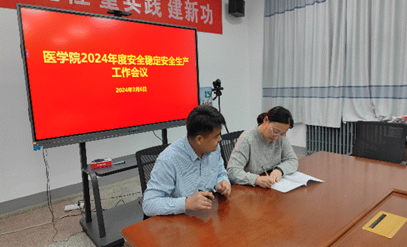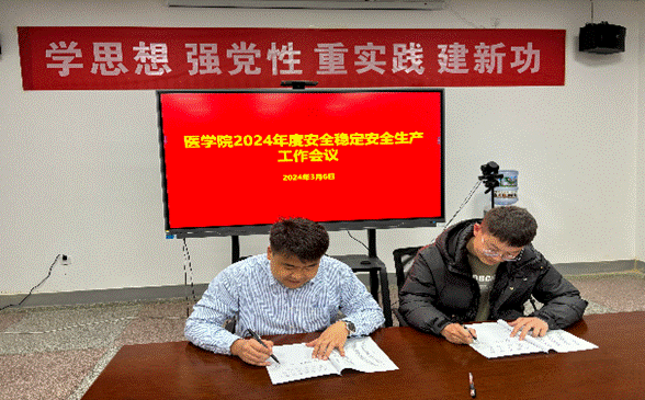 在会上,马志邦同志就扎实推进医学院2024年度安全稳定、安全生产与管理工作进行了安排部署并提出明确要求。他指出,各科室、专业负责人、科研平台、教学实验室、班主任、辅导员要牢固树立稳定是前提和“安全第一”的思想,进一步加强学院各科室、班级、办公场所、实验平台的安全精细化管理,强化主体责任意识,健全安全风险防范管理机制,坚持从源头上防范化解安全风险。加强学院所管辖教学楼、实验楼、办公室、学生宿舍等场所日常管理,加强用电用水、消防安全等方面工作的监督管理,预防和减少安全事故的发生,保障师生人身利益和公共财产安全。