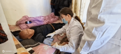 在活动现场,志愿服务团队为村民提供了全方位的健康服务,详细解答他们关于常见病、多发病的预防诊治问题,并根据村民的实际情况,提供个性化的健康指导和建议。针对当地肺结核高发的现状,志愿者们还专门开展了肺结核防治知识宣讲,用通俗易懂的语言向村民讲解肺结核的传播途径、症状表现、治疗方法以及预防措施,帮助村民树立“未病先防”的健康理念,提升他们的健康意识。 为照顾行动不便的老年人和困难群众,组织师生党员分组入户,为他们提供上门诊疗服务,党员师生们细心询问老人身体状况,进行基础检查,并根据实际情况赠送常用药品,叮嘱他们按时服药,注意日常保健。