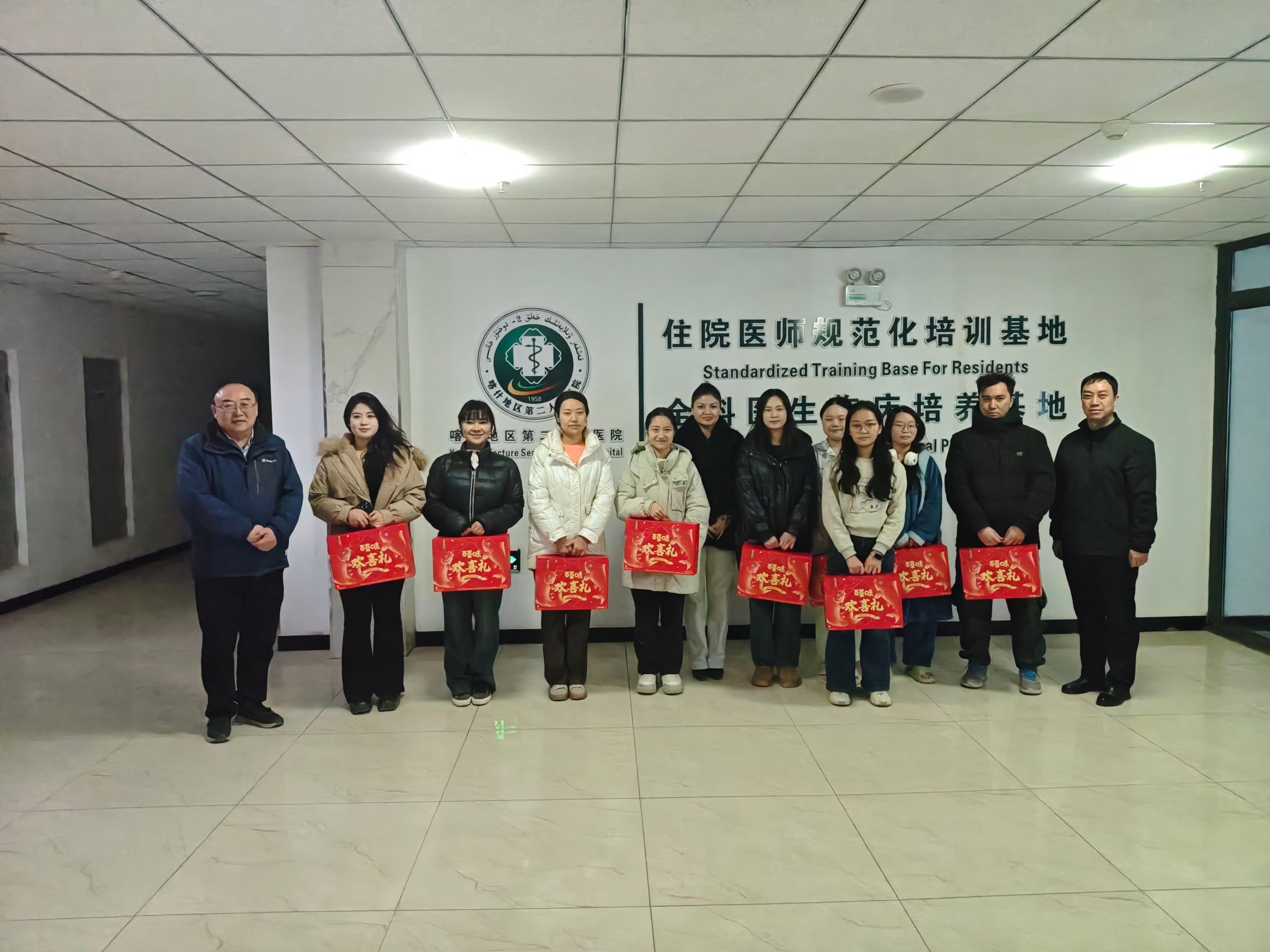 新春佳节来临之际,为切实关心实习学生的学习、生活与身心健康,让远在一线临床岗位的学子感受到学院的温暖与牵挂,2026年2月11日至12日,医学院党总支书记刘江、副院长俞胜清率教学秘书阿尼克孜·吾吉、专任教师王坤组成慰问小组,深入喀什地区第一人民医院、喀什地区第二人民医院、喀什市人民医院、陆军第947医院、克州人民医院等五家实习单位,开展“新春慰问暖人心 医路相伴共成长”主题慰问活动,亲切看望正在岗位实习的2022级护理班75名学生,为同学们送上新春祝福与暖心关怀。